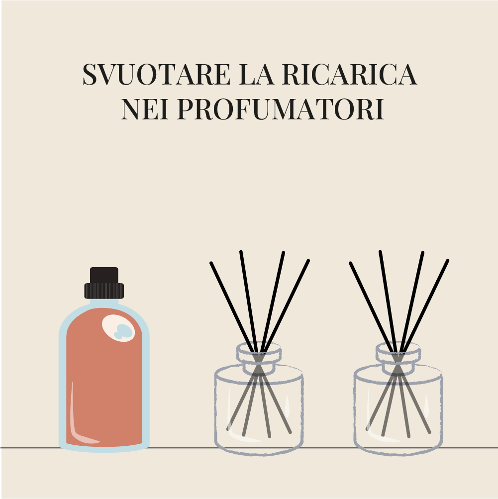 La durata e la diffusione della fragranza sono influenzate dalla capienza dell’ambiente scelto. Vi lasciamo qualche accorgimento per un ottimale utilizzo: