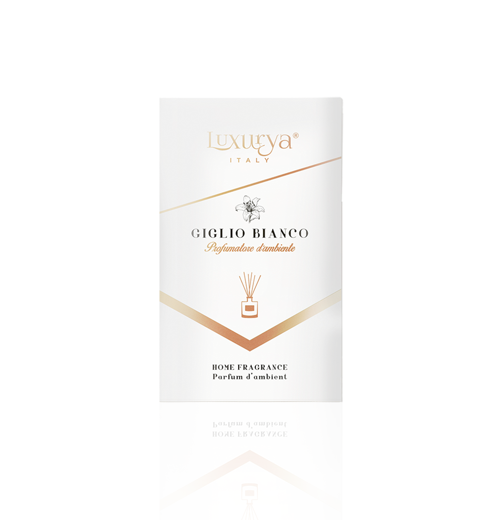 Una fragranza inebriante, ispirato al giglio bianco, simbolo di purezza e nobiltà, apprezzato per secoli per la sua eleganza e il suo profumo inconfondibile, originario dell'Europa, dell'Asia e del Nord America. Essenza regale, in grado di diffondere un aroma che non solo rinfresca l'aria, ma eleva l'intero ambiente con un tocco di sofisticata grazia, evocando l'immagine di un giardino in fiore al mattino. Un profumo avvolgente con note di testa fresche e leggere che si fondono armoniosamente con le note centrali dolci e floreali dei petali di giglio, offrendo un profumo puro e raffinato. Infine, le note di fondo, con un tocco verde e fresco, donano una sensazione di naturalezza e vitalità, completando un'esperienza olfattiva rilassante e rigenerante. Che sia una camera da letto, un bagno o un salotto, questa fragranza è un invito a lasciarsi avvolgere da un mondo di eleganza, purezza e magnificenza.